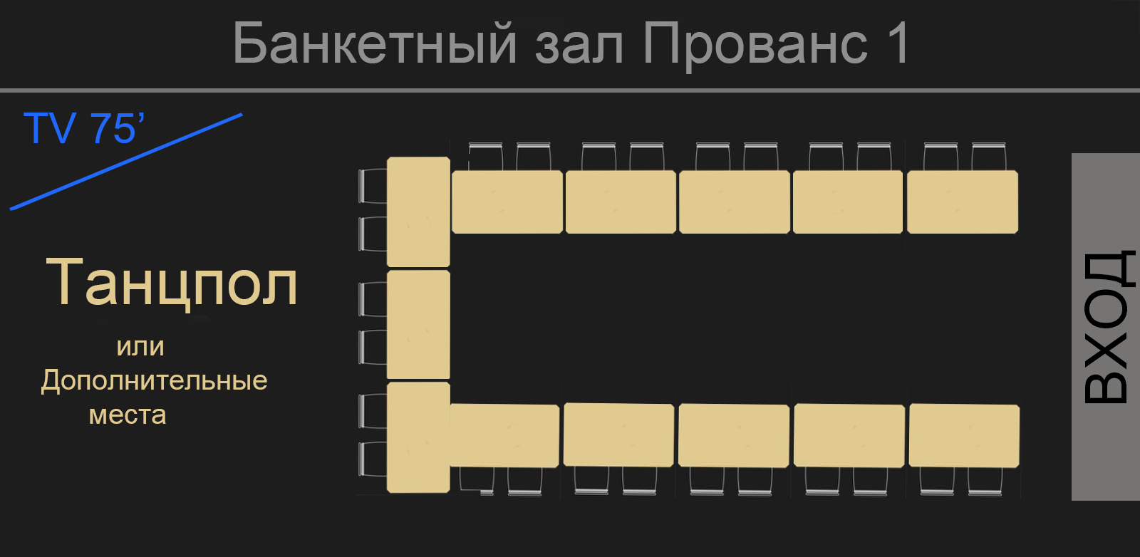 Банкетный зал “Прованс” – Размещение до 42 человек.